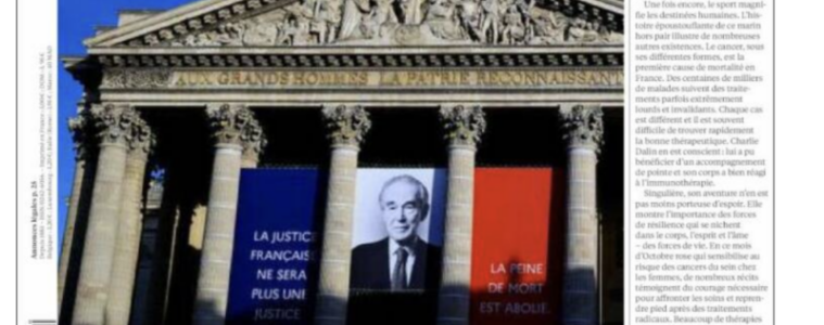 「La vie est plus forte que la vie 」 1981年、当時法相だったロベール・バダンテールは念願の死刑廃止法を成立させた。なによりもその功績をたたえられ、10月9日にパンテオン入り。 彼の父と叔父はナチスの強制収容所で死亡しているが、1956年、当時28歳だったバダンテールはアウシュビッツ強制収容所跡を訪れる。その入り口に咲きみだれるマルグリットの白い花に感動し、「La vie est plus forte que la vie 生は死よりも強し」とつぶやく。(真) Robert Badinter (1928-2024) ミッテラン政権で1981年から86年まで法相、86年から95年まで憲法評議会の議長を務めたロベール・バダンテールは、1928年、ロシアからフランスへ移住したユダヤ人の両親のもとパリに生まれた。父親はリヨンでナチスドイツに囚われ強制収容所で死亡。ロベールはフランス風に苗字をベルテと名乗りサヴォアに住み、シャンベリーの高校に進学。戦後、パリ大学で社会学と法学を学び1950年に弁護士となる。チャップリンの弁護をしたことなどから人気弁護士となり人脈を広げるが、その頃、のちに大統領となるフランソワ・ミッテランと知り合う。弁護士として働いていた70年代から死刑制度廃止を掲げるが、当時は死刑の犯罪抑止説が主流で、バダンテールのもとには日々脅迫状が届き、極右分子により家に爆弾を仕掛けられるなど身の危険にまで及んだが信条を曲げることはなかった。ミッテランの大統領選挙キャンペーンに参加し、同氏は公約として死刑制度廃止を掲げる。ミッテラン氏が選出され政権で法務相に就任、死刑制度廃止を成就させた。