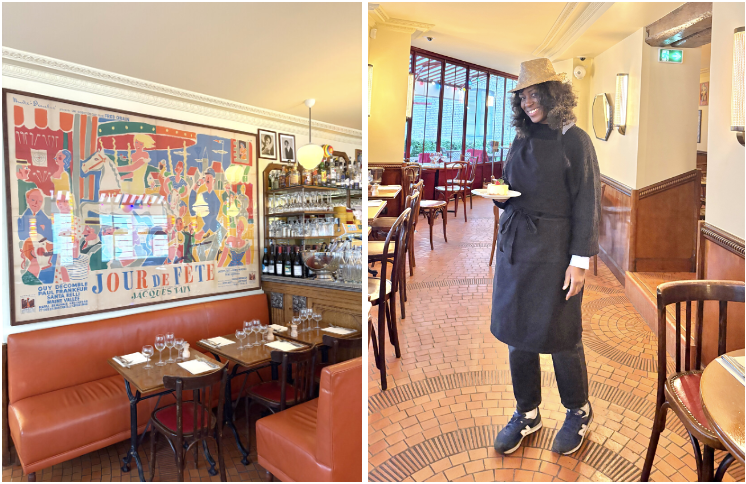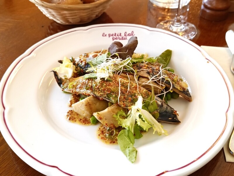 ムフタール通りから静かな小路をぬけると、緑に囲まれた 「ル・プチ・バル・ペルデュ」が現れる。南向きの広いテラスか、タチの映画のポスターが貼られた店内で、バカンス気分でビストロ料理を。日替わりランチメニューなら、前菜+メイン、またはメイン+デザートで19.50€。食事の時間帯以外なら、カフェとして朝から晩まで利用できる。家族そろっての食事、お祝いのテーブル、食べたいだけよそってもらえるムース・オ・ショコラに満面の笑顔のお客たち。ル・プチ・バル・ペルデュに行くと、