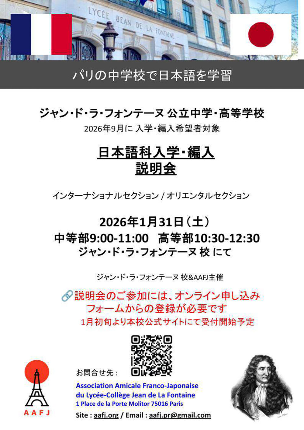 開講説明会をパリにて実施いたします。