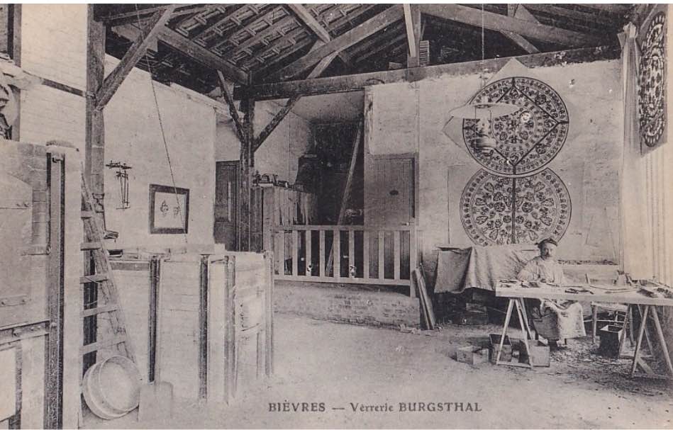 音楽と絵画の世界を融合できる彼に、ファイエは食堂、音楽室のステンドグラス製作(テーマはワーグナーのオペラ4部作)も依頼した。そしてそのために、砂の質がいいパリ郊外のビエーヴルにガラス工房を造ることを決めるのだ(ファイエはその隣町イニーにシャトーを買って移住していたのと、ルドンもビエーヴルに住んでいた)。工房の土地はファイエが買い、ビュルクシュタルが窯を設計した。