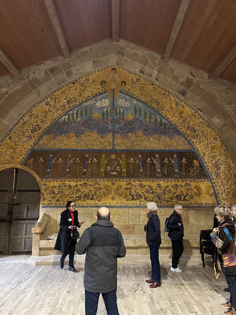 時代もスタイルも異なる彫刻、スペインのタイルや角灯、ビューグスタールのステンドグラス、ルドンの壁画…異なる装飾の要素が、千年前に建てられた修道院のなかで調和する。ファイエは装飾という交響曲の指揮者でありフォンフロワド修道院という総合芸術こそが彼の最高傑作である、という趣旨の、新しい見学コースに参加できる。