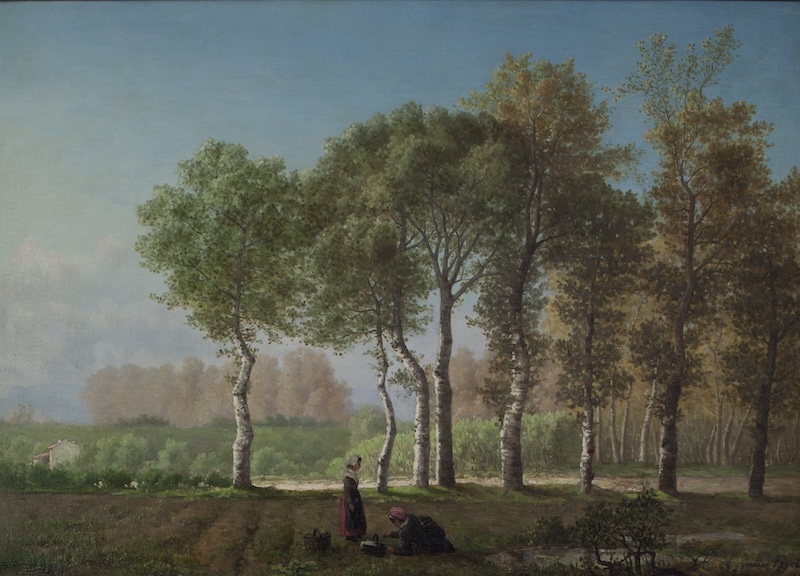 バルビゾン派的作品。Femmes dans un champ au bord du chemin. Gustave Fayet 1887