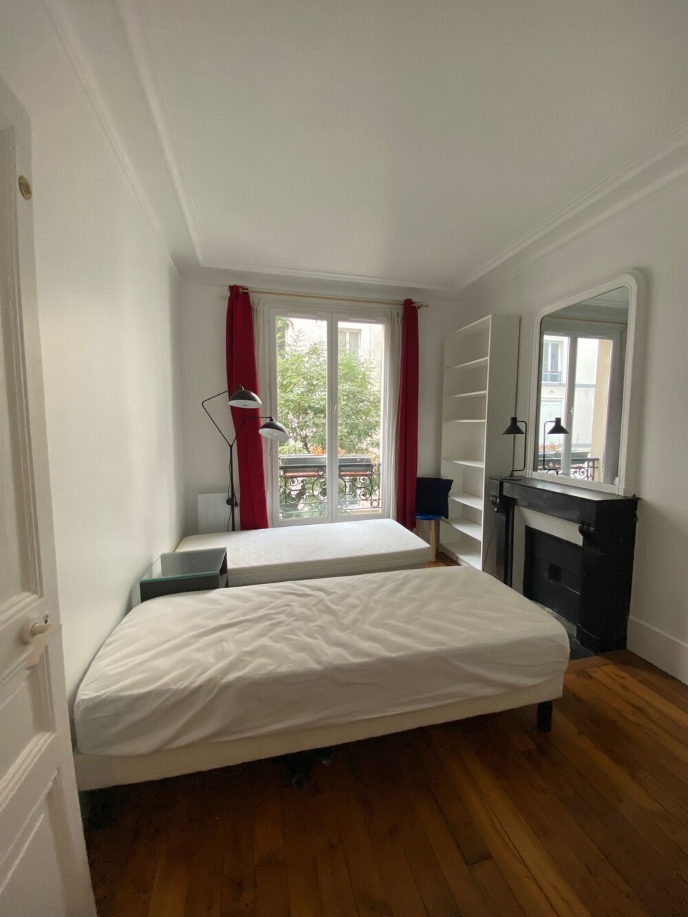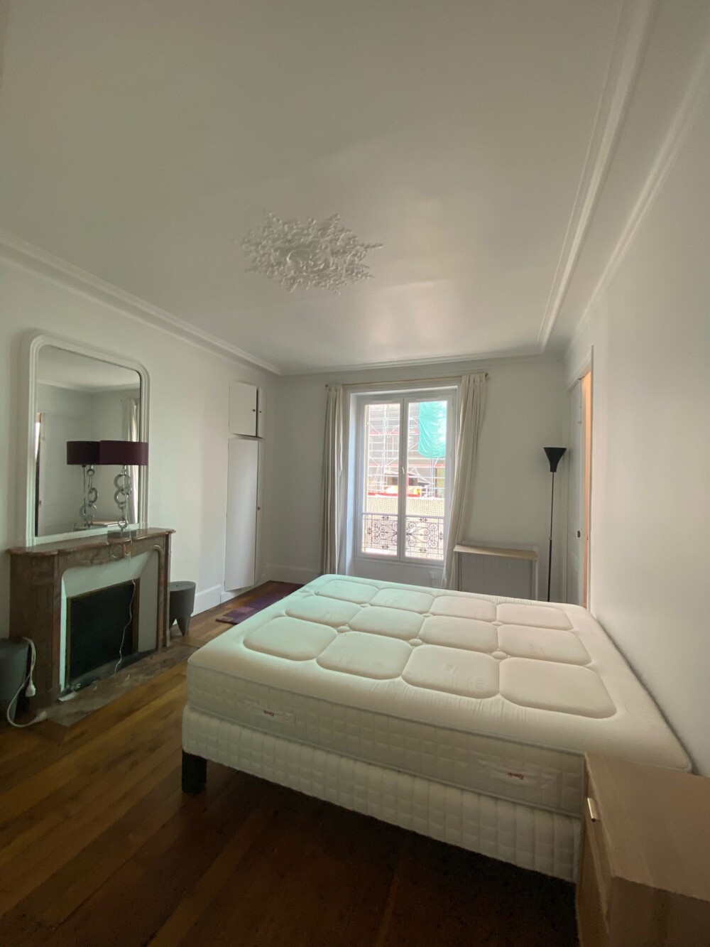 暖炉、高い天井の装飾やフローリングなど、典型的なパリスタイルのアパートです
