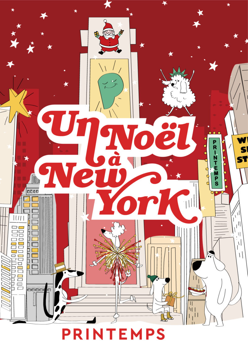 毎年恒例のパリの風物詩でもあるマリオネット仕掛けのウィンドーでは、おしゃれでクールなニューヨーカーに扮した犬たちが、ユーモアたっぷりにクリスマスシーズンのきらびやかなニューヨークの街を行き交います。